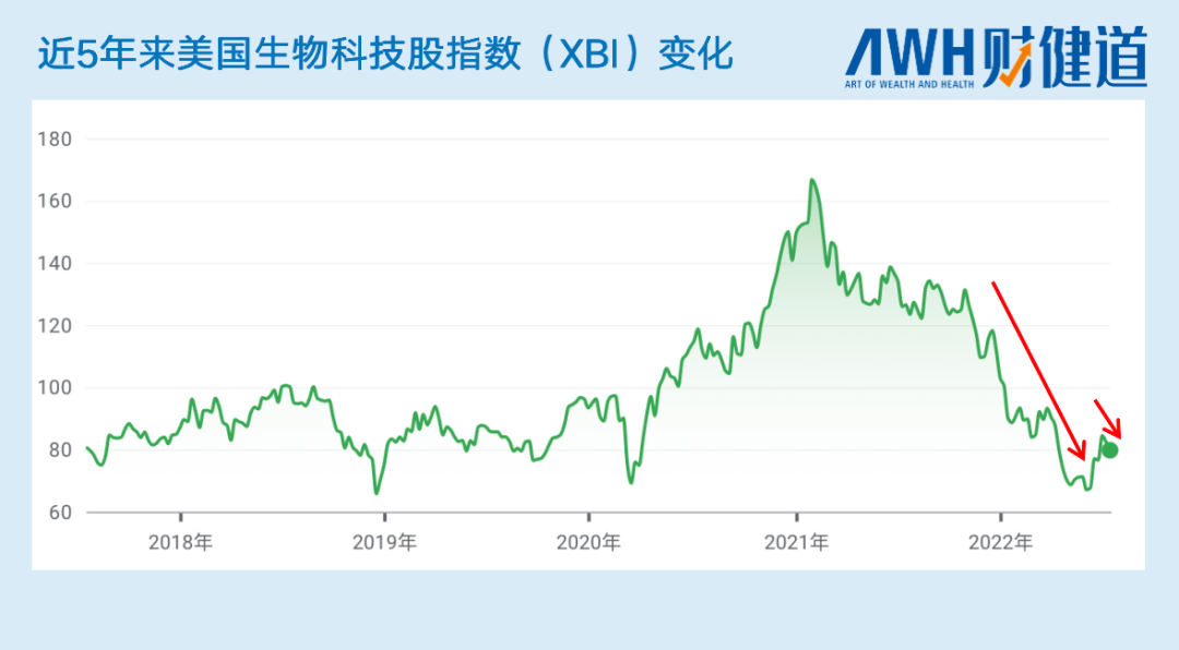 近一月,美国生物科技股指数(XBI)刚刚进入小幅度回升阶段后,再次下跌。