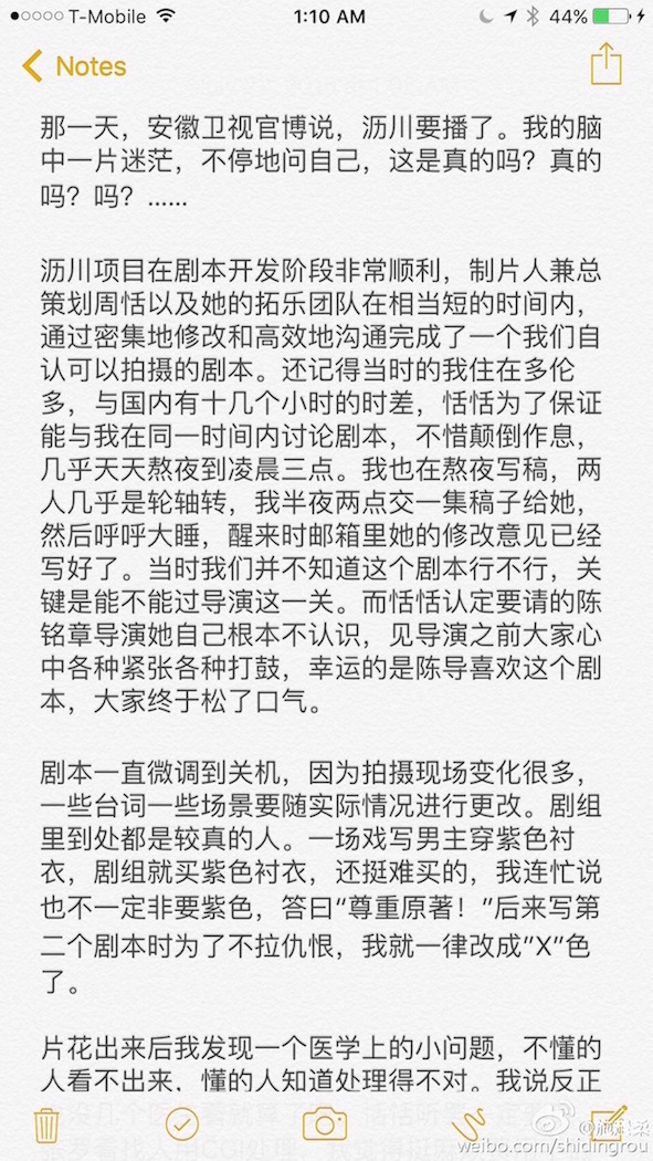 2011年,周恬打算创业,开始筹建自己的影视公司。在筹备期间,她在朋友推荐下,阅读了《沥川往事》,并决定将这部网文小说改编成电视剧。为此她专程前往美国,在美加交界处的尼亚加拉瀑布与小说作者施定柔见面。她向界面新闻回忆当时商谈的内容,“我详细地给定柔讲了我作为制片方对剧的改编方案,包括打算聘请陈铭章先生作为此剧的导演,选择哪些拍摄地,如何还原原著,以及整体剧的风格和改编方向,我也表达了创业作的决心,定柔和我一拍即合。”