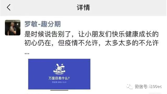 2022年3月,罗敏在朋友圈发文告别万里目少儿教育项目。