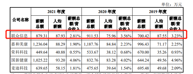 并且,联众网络还出具了同行企业嘉和美康、荣科科技、国新健康等公司的薪酬情况,来证明公司薪酬处于行业内相对较高水平,不存在利用分红减少相关人员的薪酬而达到提升利润的情况。