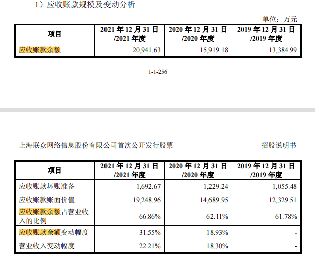 2019—2021年期间,公司应收账款分别为 1.34亿元、1.59亿元和2.09 亿元,占同期公司营业收入的比例分别为61.78%、62.11%和 66.86%。