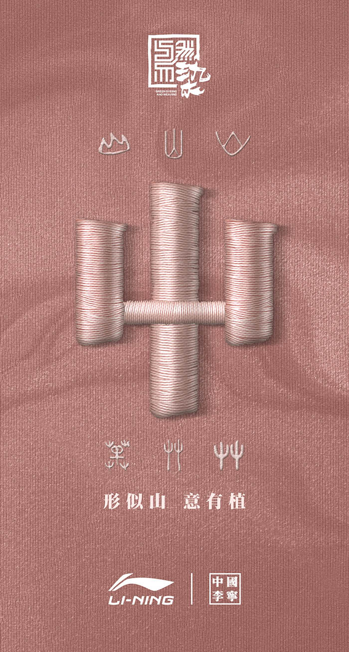 中国李宁推出22秋冬VITAL系列下植物染全新单品,并发布全新文化符号——“屮”(chè),将中国工艺和环保可持续理念注入潮流表达。