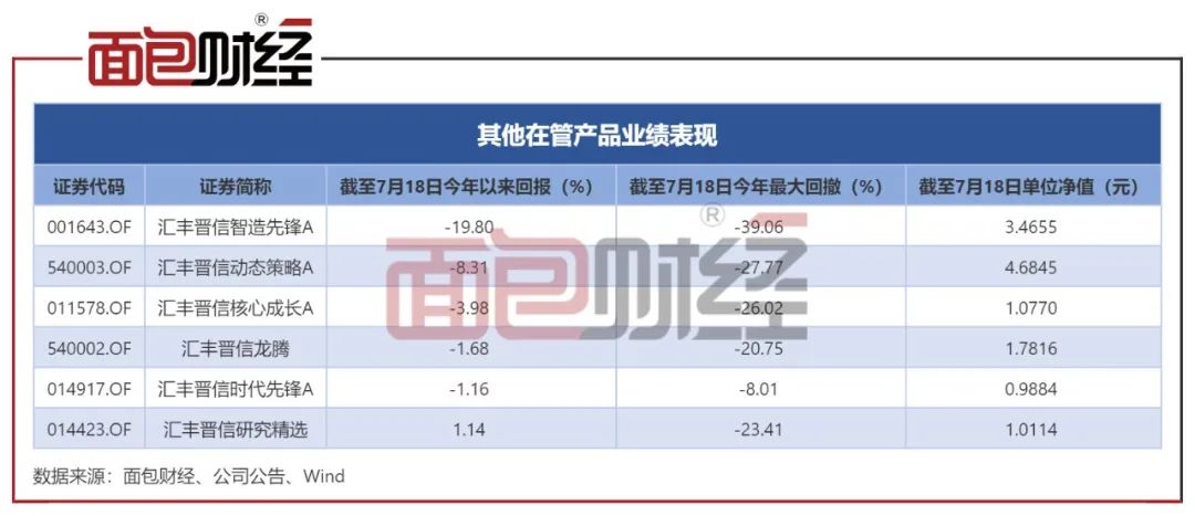 其他在管产品:汇丰晋信智造先锋A亏损近两成,排名靠后