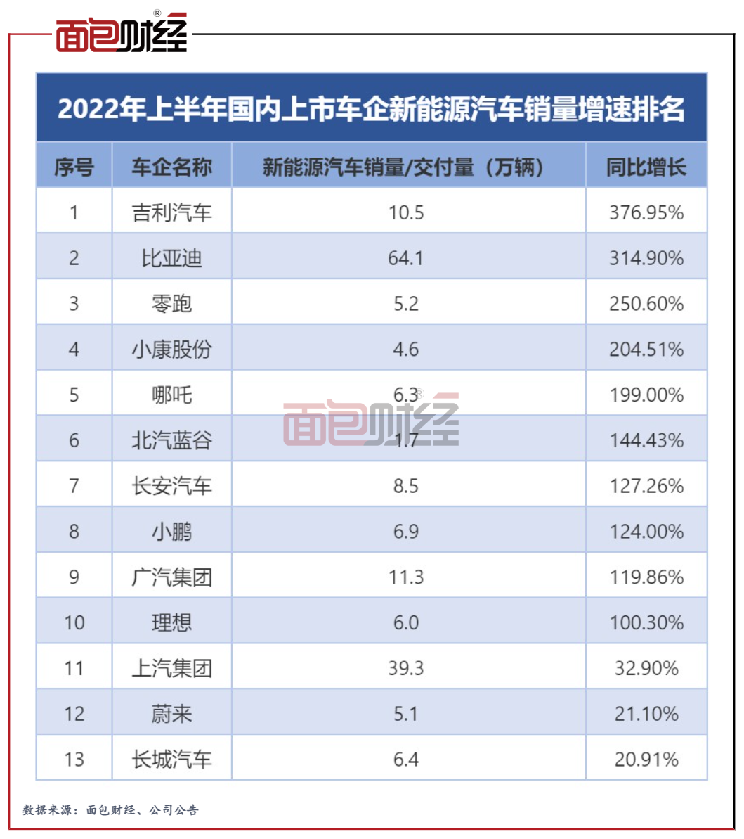 不过,情况似乎正在发生一些变化。2021年以来,吉利汽车成立极氪、睿蓝等品牌,在新能源汽车市场奋起直追。2022年上半年,吉利汽车新能源汽车同比增长近377%,销量增速力压比亚迪,在国内乘用车上市车企中排在首位。