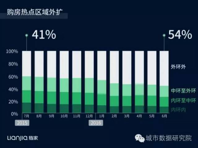 首先,房地产的需求由外环内向外环外延伸是一个趋势。近年来,上海不断新开通地铁线路,也出台了新的地铁规划,将地铁线延伸到了城市的外围,同时城市副中心建设也在不断进行。这就使得居住需求有了更多的选择。根据链家的数据,最近一年,外环外成交的二手房占比逐渐增多,在今年2月,外环外成交占比首次超过50%。从去年7月的41%到今年6月的54%,增加了11个百分点。在未来相信这个比例还会持续升高。