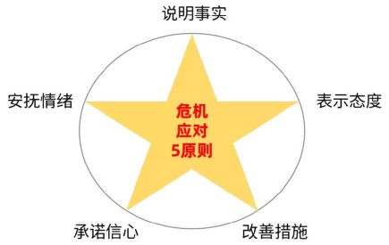 第一原则是安抚情绪,第二原则是说明事实,然后是表明态度,再是提改善措施,最后是承诺信心。
