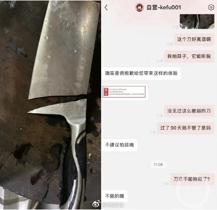 但张小泉没这么做,没有第一时间表明愿意对这事负责,反而咬定自家刀不能拍蒜。
