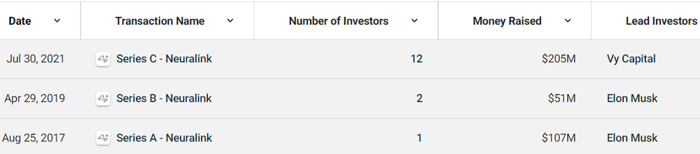 Neuralink在2017年8月进行1.07亿美元A轮融资,在2019年4月进行了B轮融资。Crunchbase网站显示,马斯克是这两轮融资的领投方。