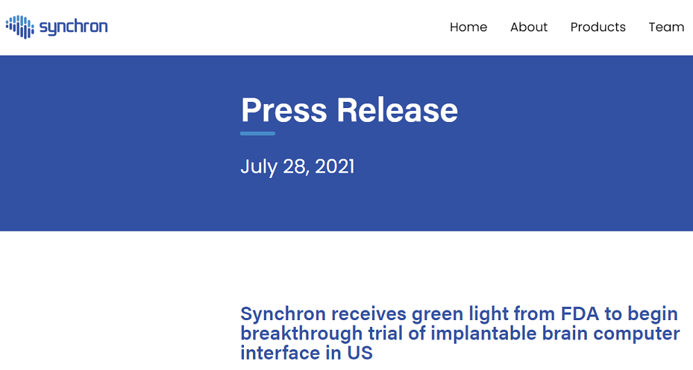 2021年7月,美国脑机接口公司Synchron宣布,美国食品药品监督管理局(FDA)已批准其嵌入式脑机接口产品的临床研究性器械豁免。这为其将脑机接口产品用于治疗瘫痪铺平了道路。