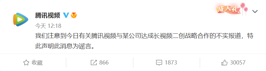 值得关注的是,在抖音集团与爱奇艺宣布合作消息传出之时,有媒体称,腾讯视频也正在和快手谈判二创战略合作。尽管当天腾讯视频火速下场进行辟谣,但今年以来,接连发生的三次长、短视频平台合作,可见长、短视频平台就二创合作已成为一种趋势,腾讯视频与快手的合作传言或并非毫无根据。