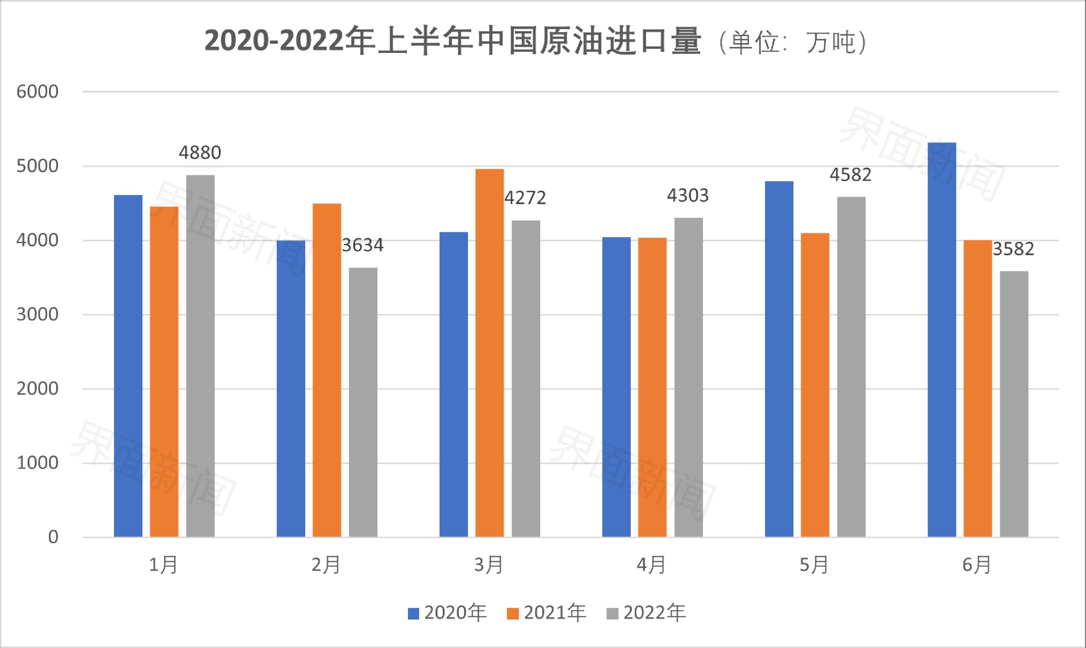 6月,中国原油进口量为3582万吨,环比下降21.8%,同比下降10.6%,达到了自2018年7月以来中国原油进口的最低水平。2018年6月,中国进口了3434万吨原油。
