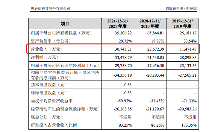 从公司业务来看,思必驰的科技属性十分明确,提供“云+芯”的一体化解决方案,拥有当下多场景解决方案的必备技术。招股书显示,2019-2021年,思必驰营收也呈现出明显上涨态势,分别达到1.15亿元、2.37亿元和3.07亿元。