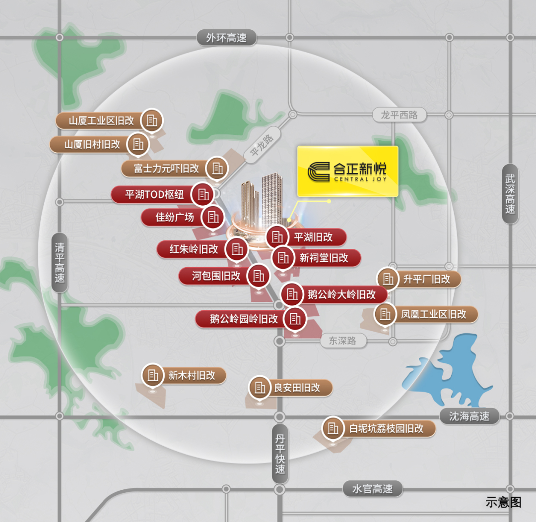 未来,平湖TOD的落地将为包括合正新悦在内的片区住户,带来更高端的产业布局、城市面貌及居住配套。