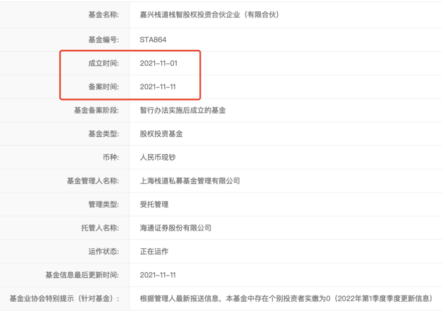 但中国证券投资基金协会数据显示,嘉兴栈道在2021年11月1日成立,2021年11月11日备案。也就是说,在嘉兴栈道还没“成形”前,就已经“落子”青岛青禾。