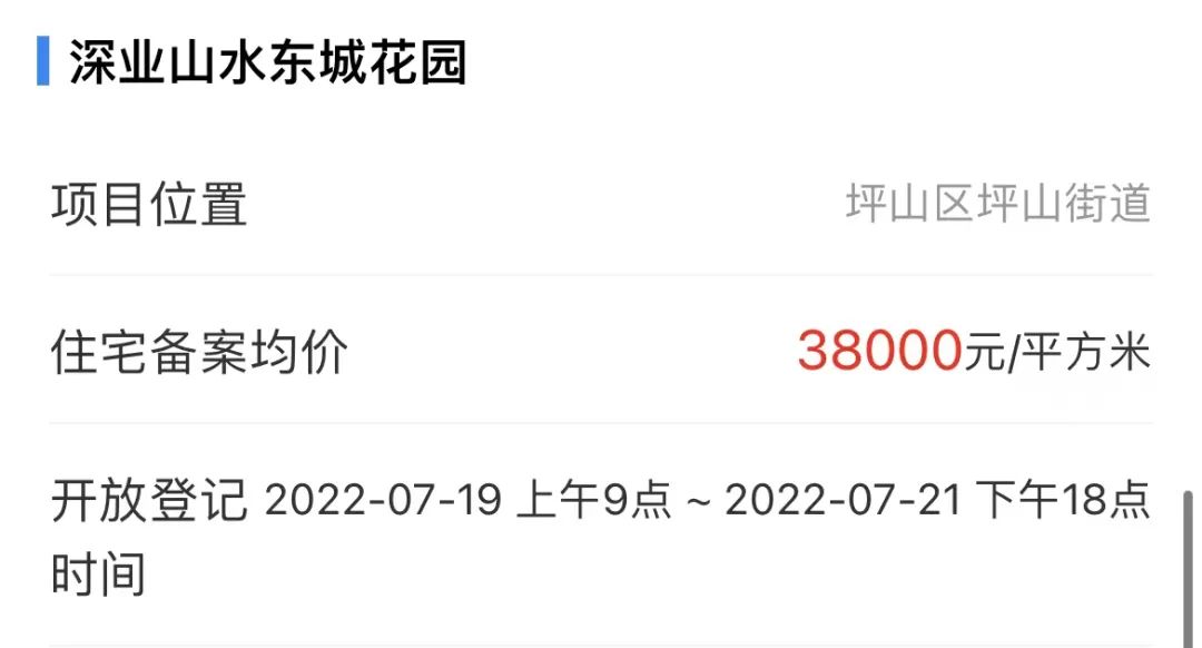 而项目均价为3.8万/平方米,低于同片区均价约4.25万元/平方米的玖誉雅筑。此外,与今年6月开盘的燕澜和鸣花园二期相比,深业山水东城花园也便宜近2000元/平方米。