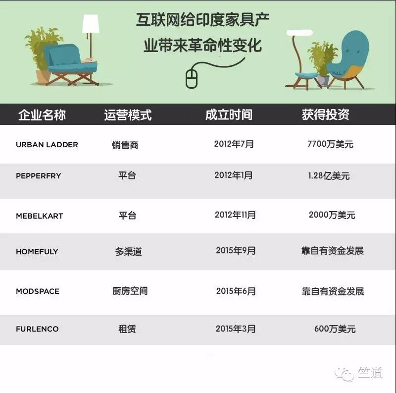 伴随着电商和互联网的发展,印度大都市的在线家具市场最近几年增长迅猛。网购家具已成为生活在印度大城市白领职员和学生的第一选择。市场上已经出现像Pepperfry、UrbanLadder等很具规模的家具电商。