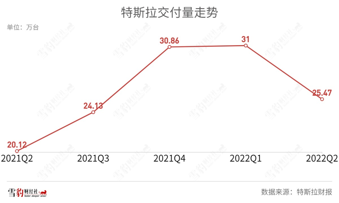 2019年-2021年,特斯拉股价三年暴涨16倍。但驶入2022年,屡创增长神话的特斯拉开始显露疲态,仅二季度的股价便跌去38%。上半年不仅未能完成交付量同比增长50%的目标,还丢掉了稳坐4年的全球电动车销冠王座。