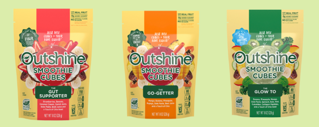 除了玩转各种各样的bar外,Outshine的冰沙系列也是一大特色,繁复多样的口味、固体和半固体的状态、自带“功能性”色彩,都为它增添了一抹独特的光辉。半固体状的冰沙除含有天然水果成分外还加入脱脂酸奶,口感更为丝滑、热量则控制得恰到好处。99g可吸食小包装方便携带。方块状的冰沙外形简单齐整,朴实无华,但它最大的亮点是用不同的水果蔬菜组合成各种健康功效,目前有支持肠道功能的GUT SUPPORTER、支持免疫的GO-GETTER、帮助皮肤容光焕发的GLOW TO 3款,同时不额外添加糖,受到很多女性消费者的欢迎。