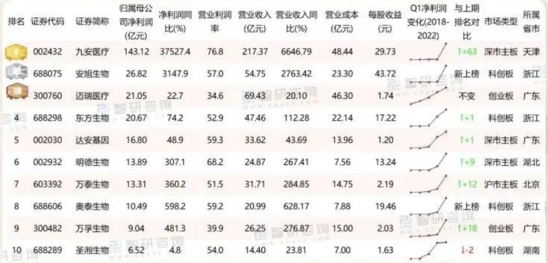2022年Q1,A股最赚钱的医疗器械公司TOP 10,无一例外,全部都是IVD企业;