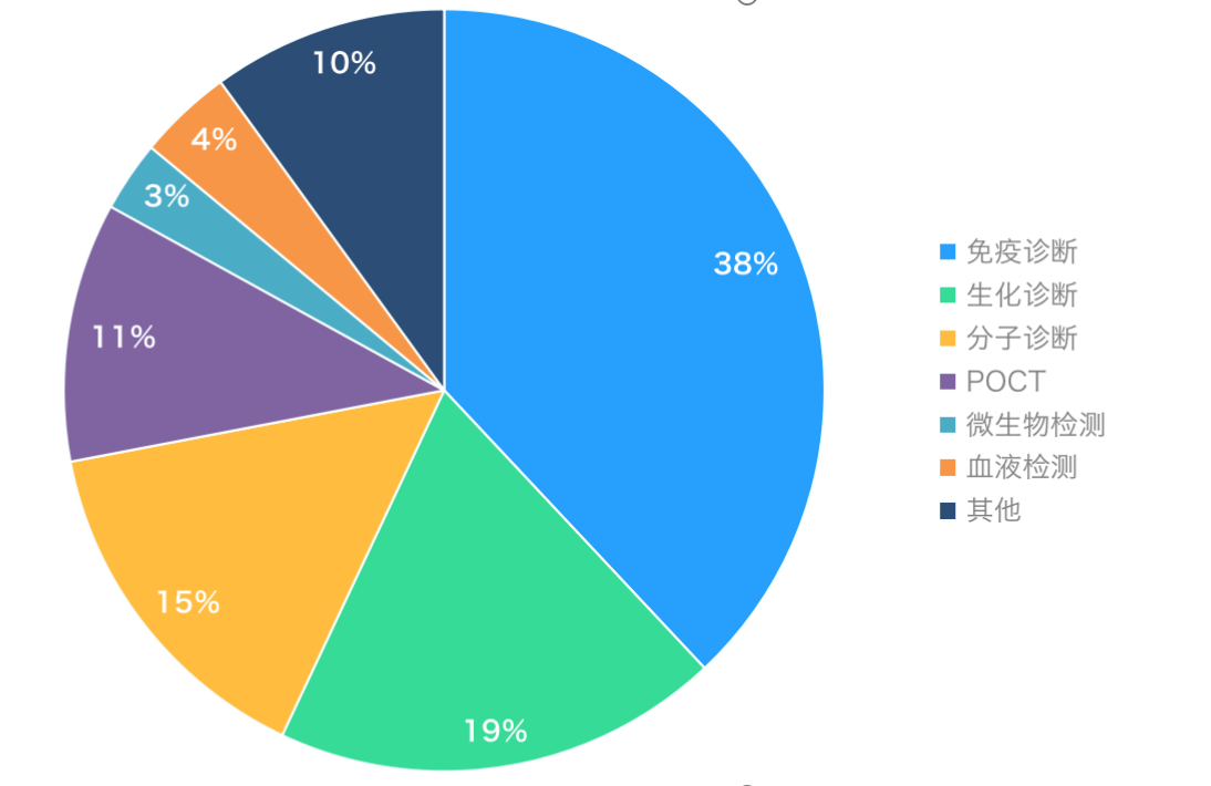 中国IVD市场细分领域市场占比统计;数据来源:《中国医疗器械蓝皮书》