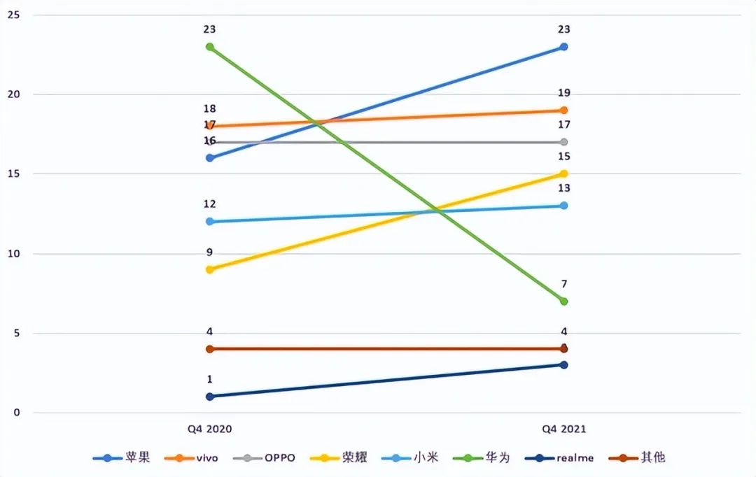 最重要的一点在于,如何突破目前已经趋于稳定的市场竞争环境,打造独特的市场需求。据第三方研究机构Counterpoint的报告显示,2021年国内智能手机市场份额苹果占比23%,vivo占比19%,OPPO占比17%,荣耀、小米、华为、realme分别占比15%、13%、7%、3% 。这些品牌加起来已经占据了国内智能手机市场97%的份额。