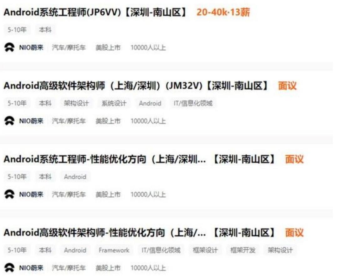 尽管蔚来方面拒绝正面回应“造手机”的猜测,但结合猎聘网信息,新项目涵盖120k*14薪的智能硬件产品经理、150k的车机互联产品专家;80k的智能硬件品牌视觉设计师等,蔚来确实有在做造车以外的硬件项目。而从招聘网站的相关公开岗位可以看出,蔚来的确正在招聘包括无线测试工程师、通信测试工程师、BSP测试工程师等与手机业务强相关的工作人员。
