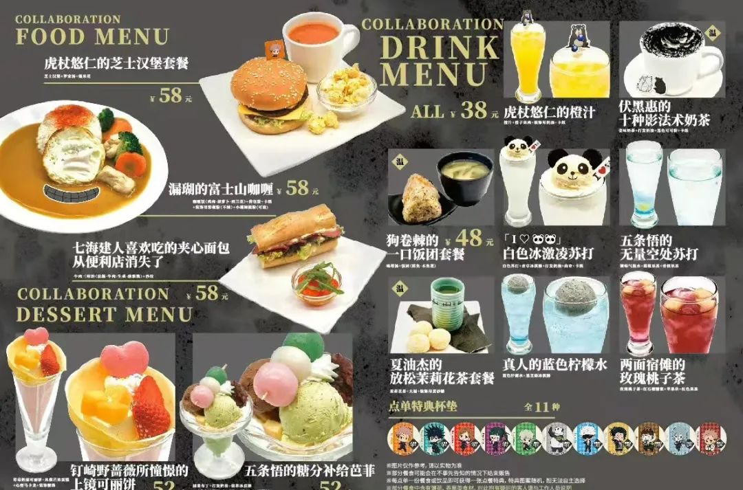 动漫《咒术回战》主题菜单,成都animate cafe,图源:animatecafe官方微博