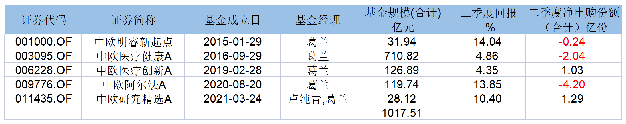 二季度规模重回千亿元!今日,中欧基金发布旗下公募产品二季报,备受关注的顶流基金经理葛兰的二季度持仓思路得以公布。