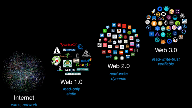 如果将互联网发展分为三个阶段,出现在Web 1.0和2.0时代的大厂名字,都成了夸张的印钞机,这就解释了为什么Web3能在资本寒冬中,获得那么多投资人的青睐。2022年之初虽然形成了一种“言必Web3”的氛围,但却没有任何一个人可以笃定的说Web3是什么并获得大家的一致认可。目前市场上认可度较高的共识是:如果说Web1.0是“只读”的互联网,Web2.0是“读+写”的互联网,那么Web3就是“读+写+拥有”的互联网。