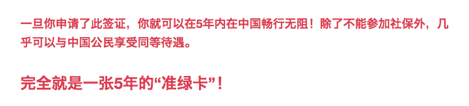 有些文章甚至指出,因为除了不能入社保之外,你和中国公民待遇差别不大!有了这个新政,你就等于手握中国“准绿卡”!