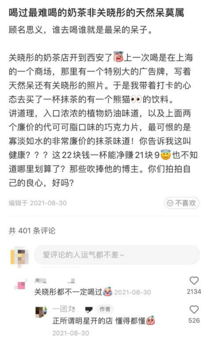 关晓彤的天然呆奶茶,就是最好的例证。受骗的加盟商为何要求明星给说法?