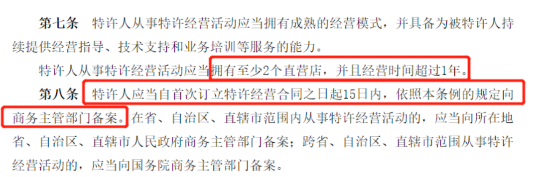 相关资料显示,成立于2020年的天然呆在21年就开展了特许经营活动,与众多代理以及加盟商签订加盟合同,然而成立未满一年的商户按理说是不具备特许经营资质和条件的。