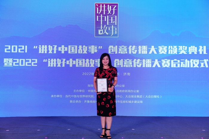 7月19日,由国务院新闻办公室指导,中国外文出版发行事业局、山东省人民政府新闻办公室主办的2021“讲好中国故事”创意传播大赛颁奖典礼暨2022“讲好中国故事”创意传播大赛启动仪式在济南举行。齐鲁理工学院报送的短视频作品《金声传古道》荣获特等奖,《这一拳,生生不息》荣获二等奖,学校被大赛组委会授予优秀承办单位。