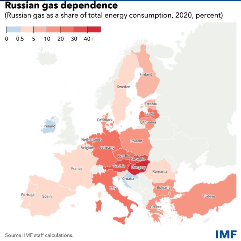 IMF周二也发表文章,警告俄罗斯断供将对欧盟各国造成不同打击。