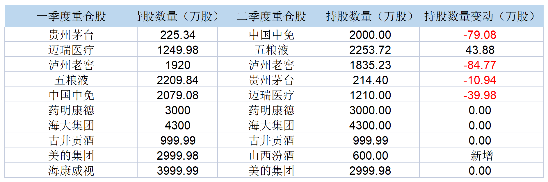 从规模最大的新兴成长的持仓来看,除了继续持有五粮液(000858.SZ)、泸州老窖(000568.SZ)、贵州茅台(600519.SH)、古井贡酒(000596.SZ)这“四杯酒”外,二季度又增加了山西汾酒(600809.SH)。