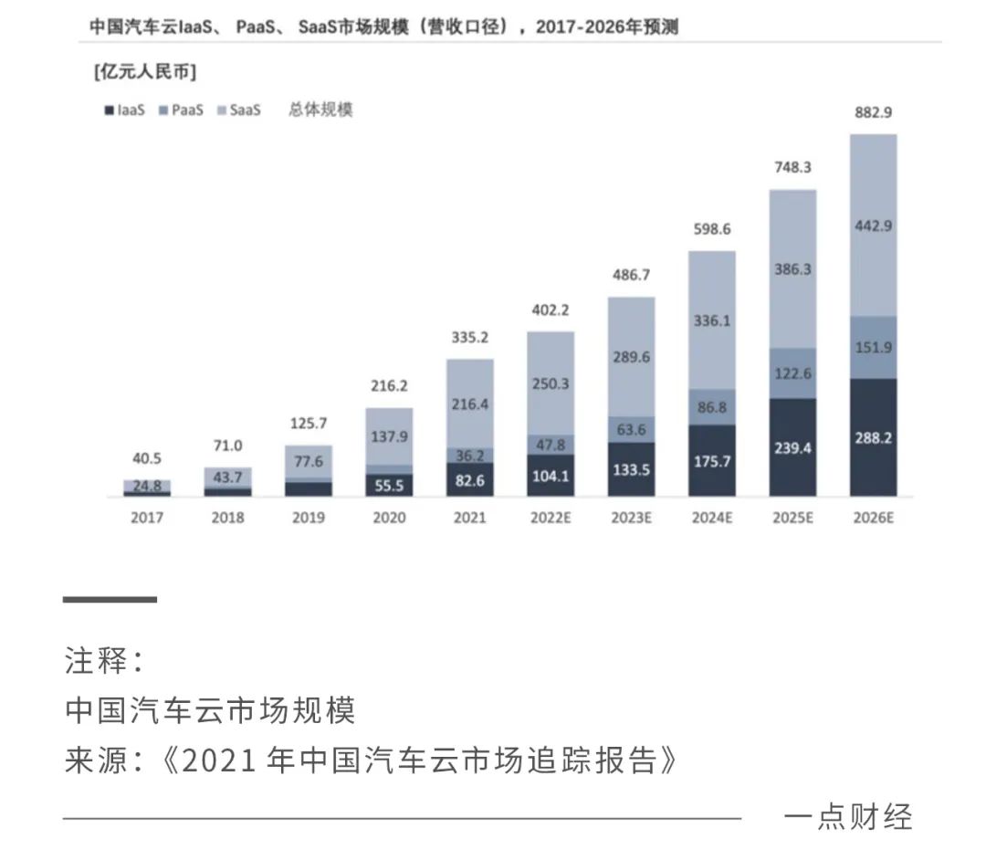而此次进军的汽车云,在产业互联网里也是一块巨大的掘金地。《2021年中国汽车云市场追踪报告》显示,2021年中国汽车云市场规模达335.2亿元,到2026年将增长到882.9亿元。