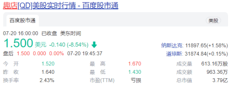 罗敏的“500亿美金梦”已经离他越来越远,截至美东时间7月20日收盘,趣店集团总市值仅剩下3.79亿美元。