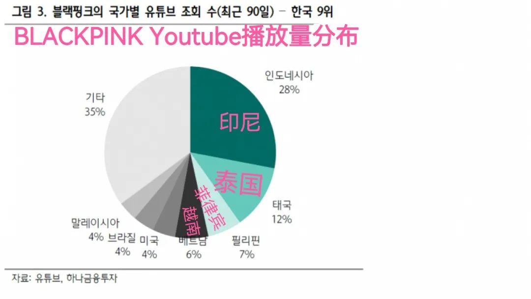 究其原因,近几年来K-Pop在东南亚市场呈现出了欣欣向荣的狂热浪潮,东南亚粉丝群体在YouTube、投票等方面展现出了强悍的数据能力。打个比方,就像SuperJunior等二代团体依赖于中国市场“恋旧”情分带来的占据专辑总销量90%以上的中输,东南亚市场就是助力BLACKPINK等组合横扫Youtube以亿或是十亿为单位播放量的存在。