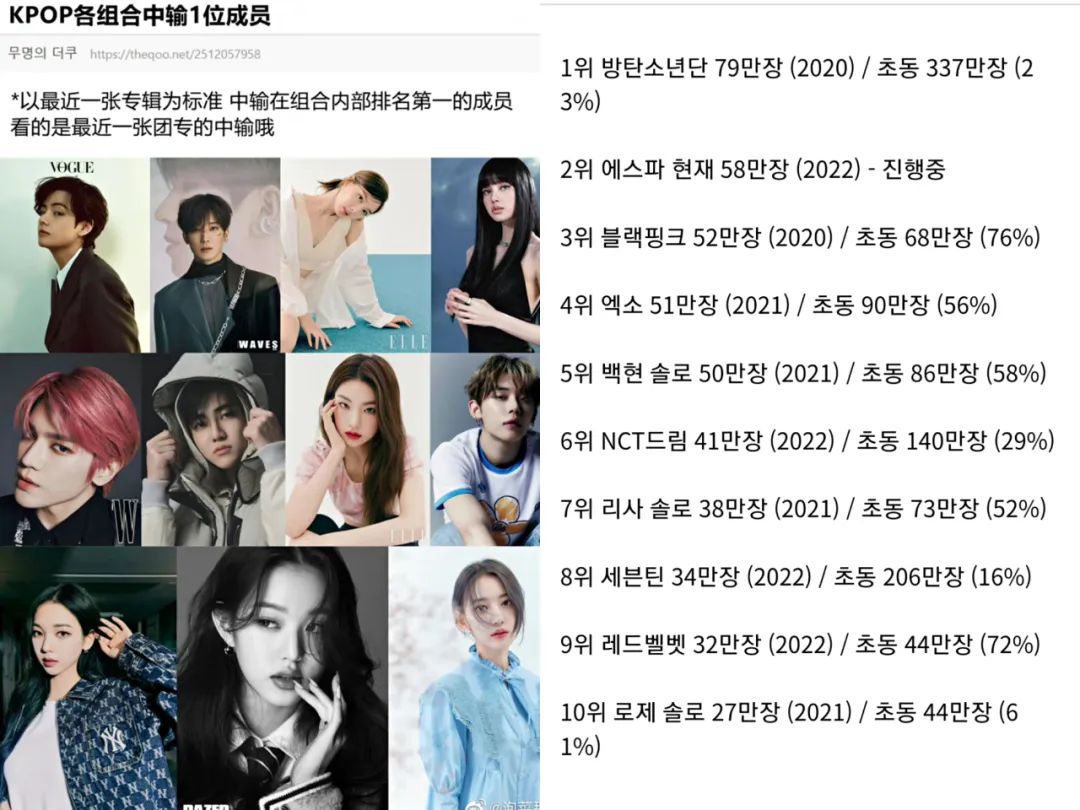 据Kpop Chart数据统计,团体中输前十位中,只有aespa、NCT DREAM、SEVENTEEN三组拥有中国绿卡;再比如NCT DREAM虽拥有黄仁俊、钟辰乐两位中国成员,但7月公布的中输数据(注:中国粉丝购买专辑情况)显示,韩国成员罗渽民反而位居队内中输第一位。