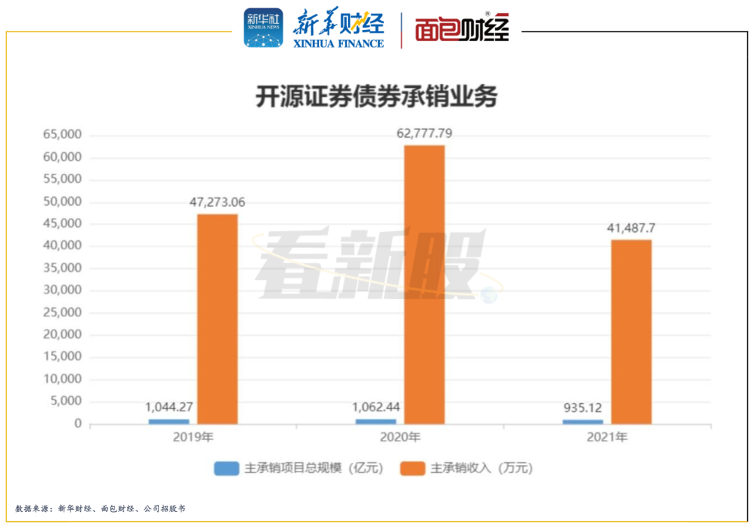 在债券承销业务方面,2021年,开源证券主承销项目总规格和主承销收入分别为935.12亿元和41487.7万元,同比分别下降11.98%和33.91%。