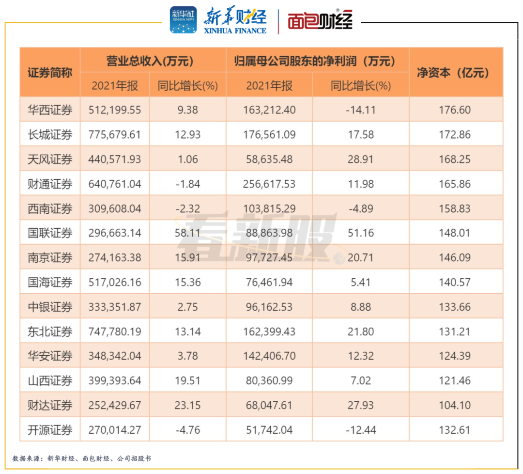 当年,在上述净资本规模可比程度较高的13家上市券商中,仅西南证券的营收和归母净利润双双同比下滑。但西南证券的营收和归母净利润分别为30.96亿元和10.38亿元,绝对额均较高且同比降幅较小。