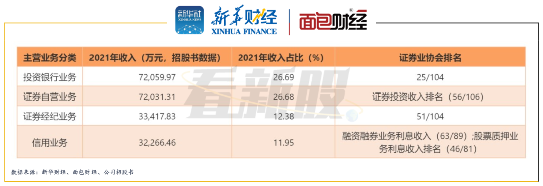 图3:2021年开源证券主要主营业务收入及证券业协会排名