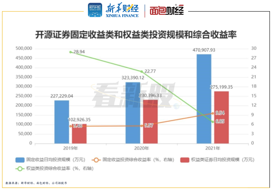 图4:开源证券固定收益类和权益类投资规模和综合收益率