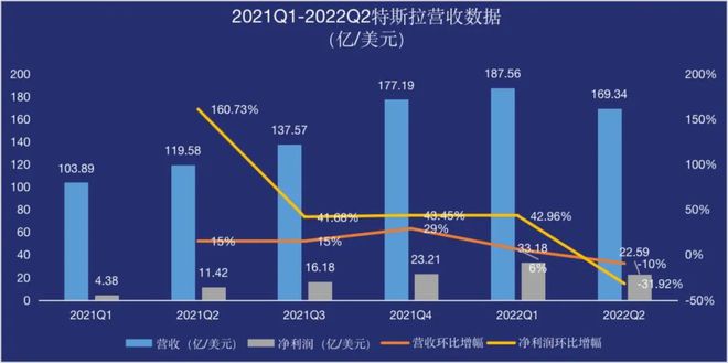 首先,特斯拉的营收与净利润同比增幅大幅下滑,且环比双双下降。
