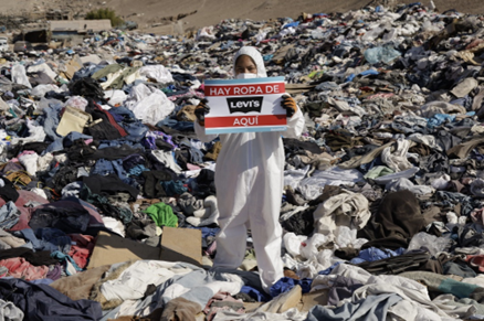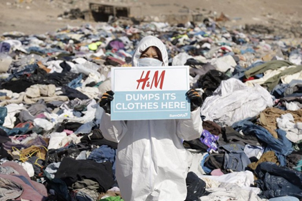 图:环保组织SumOfUs在智利的垃圾场控诉各个时尚品牌