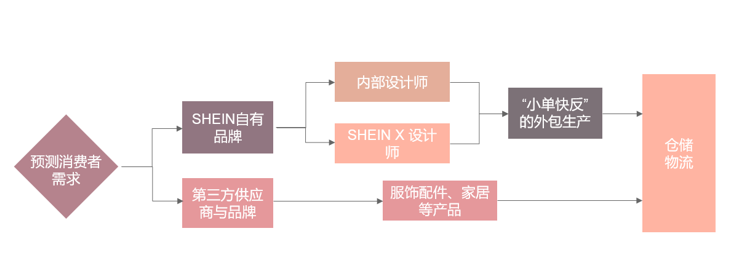 操作上,由供应商的设计师提交设计方案,经过与SHEIN的设计部门进行多轮快速打磨之后,将最终的方案拿到供应商自己的产线上生产。