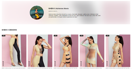 在SHEIN的网站上,你可以看到所有签约设计师的名片和可购作品。