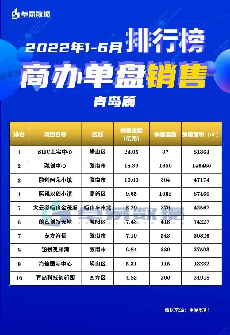 近日,卓易数据发布了青岛市1-6月房企销售排行榜,榜单一出,几家欢喜几家愁。