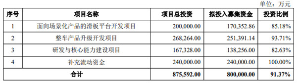 其中,“面向场景化产品的滑板平台开发项目”投资总额为20亿元,但是不直接产生经济效益,研发适用于各车型下车身的底盘平台技术,并在针对不同场景需求的设计中统筹考虑与上车体性能、结构等的配接。拟进行一次性统一开发,将复杂系统(底盘、三电、热管理)集成到下车体,一次性开发投入,大幅降低车型开发的研发费用和开发周期。