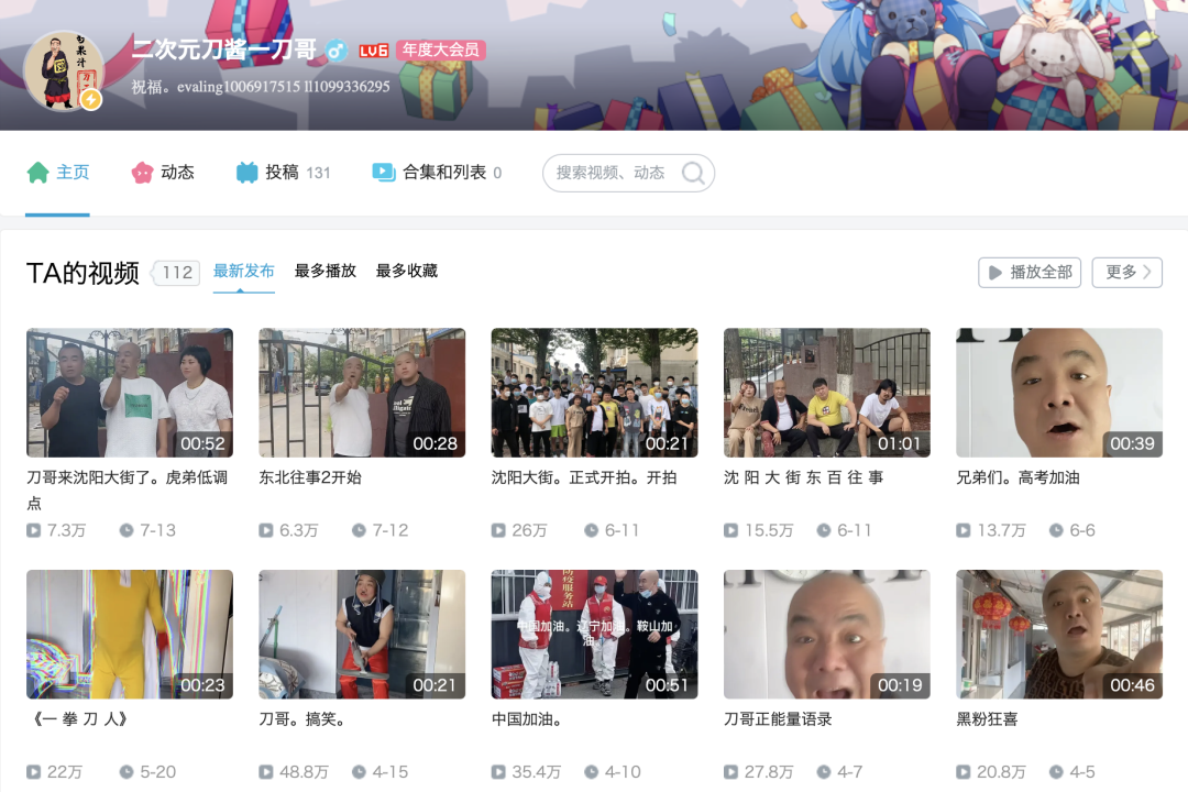 观众们能轻易通过虎哥的B站主页看到他的力不从心,在他新发布的视频中,每一条视频几乎都以虎哥+自己整的活命名,捉襟见肘的想象力,让他止步于此。